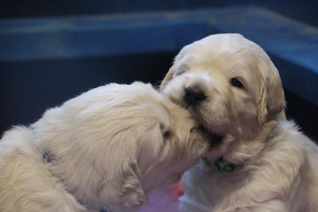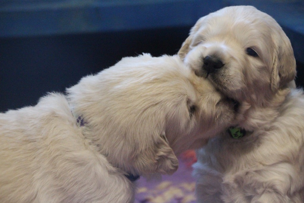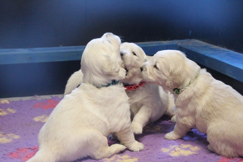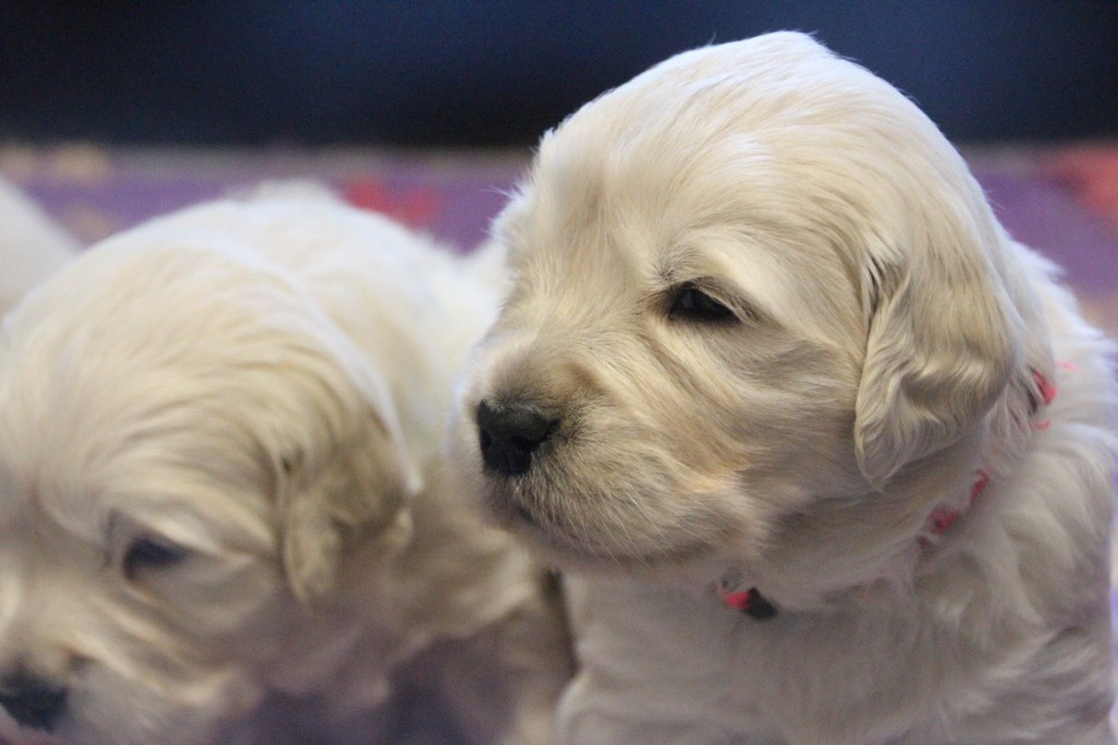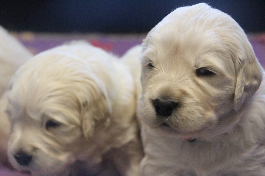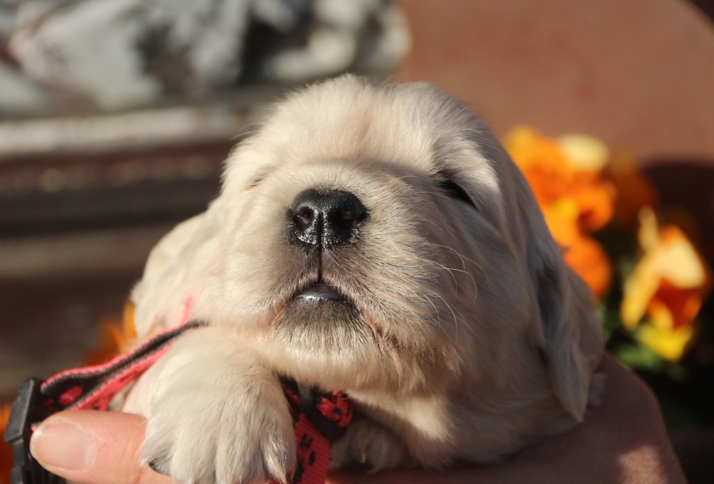Naše miminka z vrhu M rostou jako z vody a po svých rodičích Twistíčkovi a Britney zdědili nádherně modelované hlavičky se sladkým goldenním výrazem...Všichni mají úžasný tmavý pigment a mám z nich velikánskou radost....