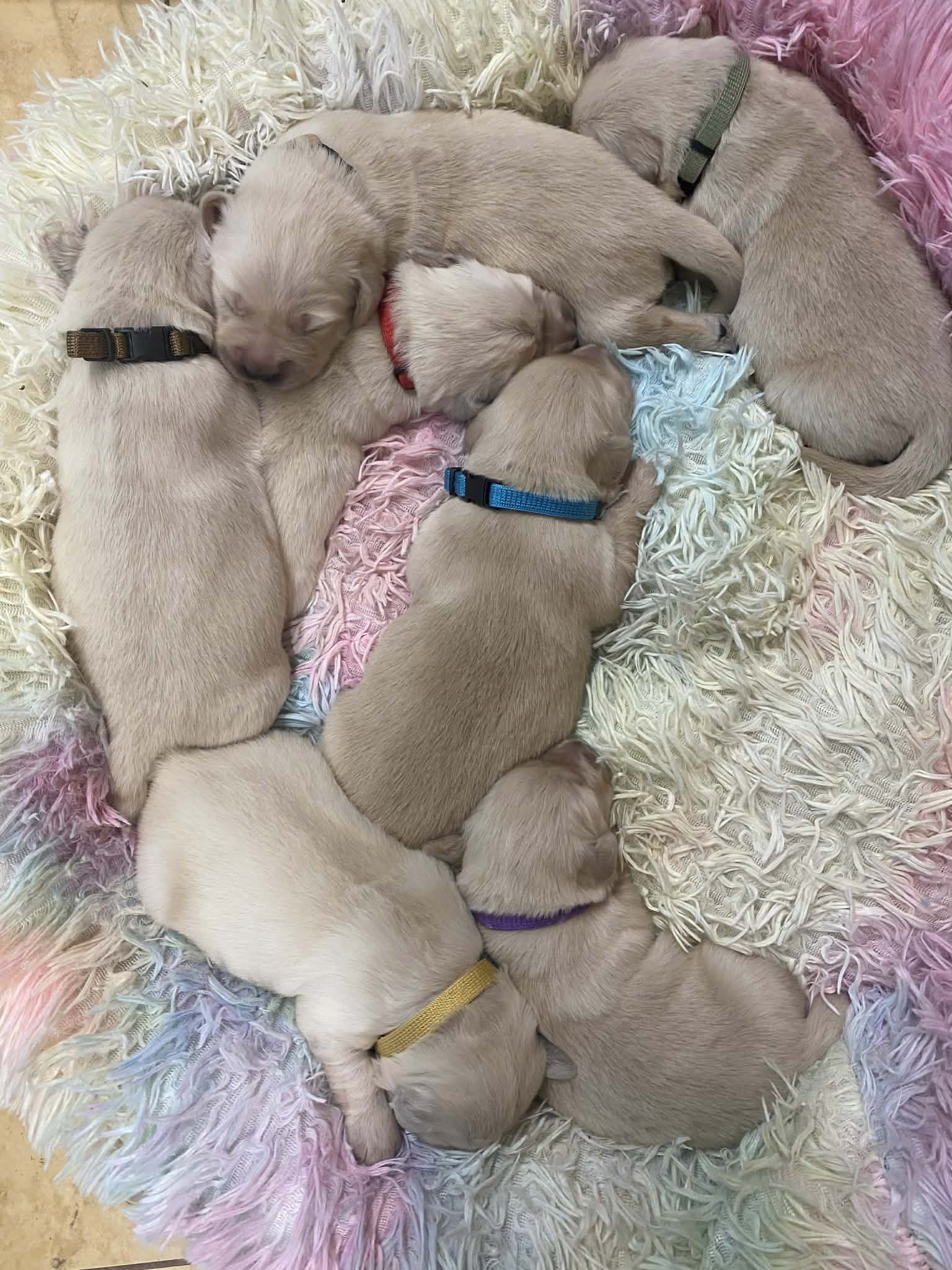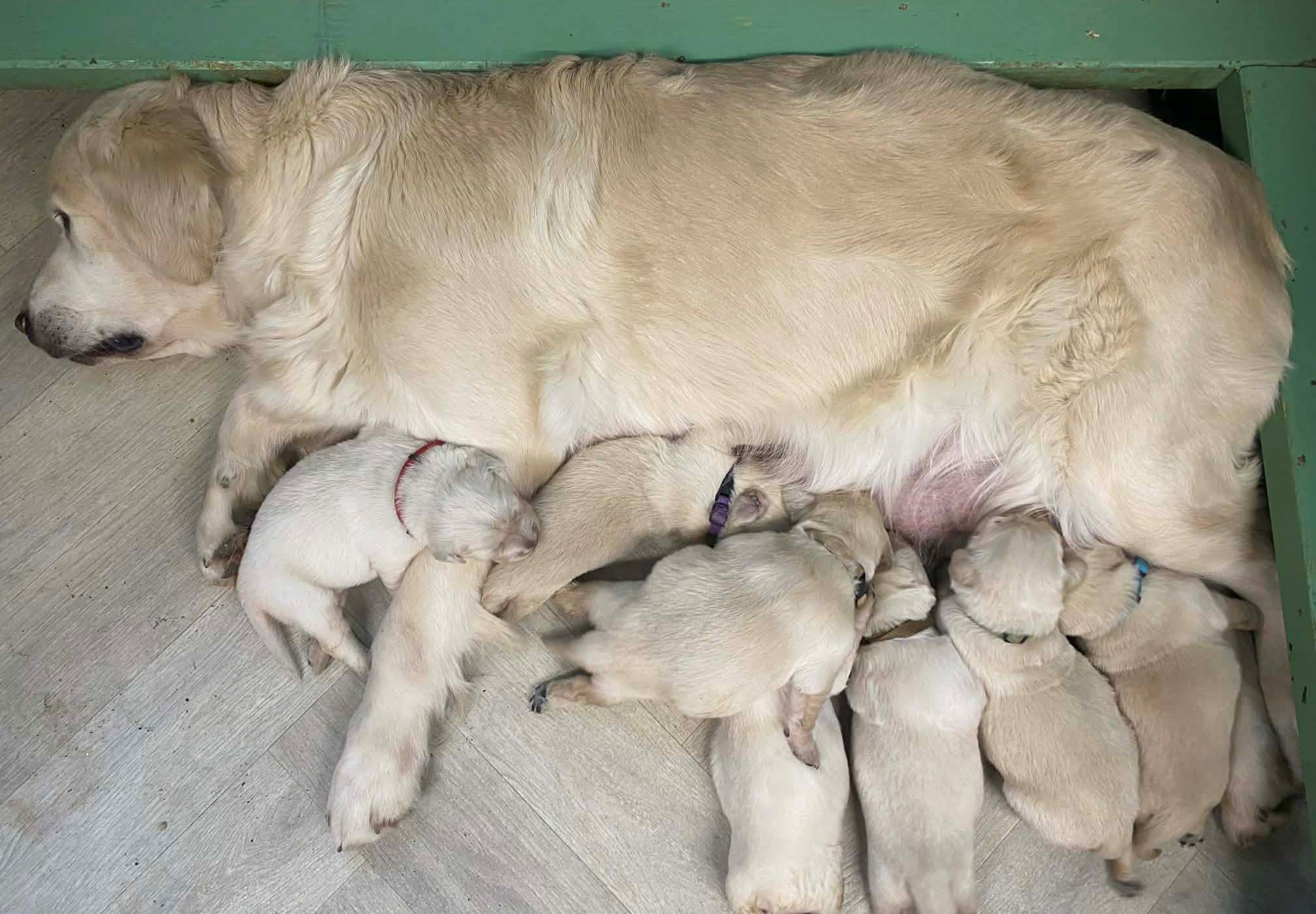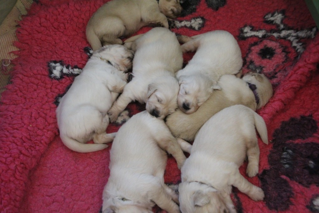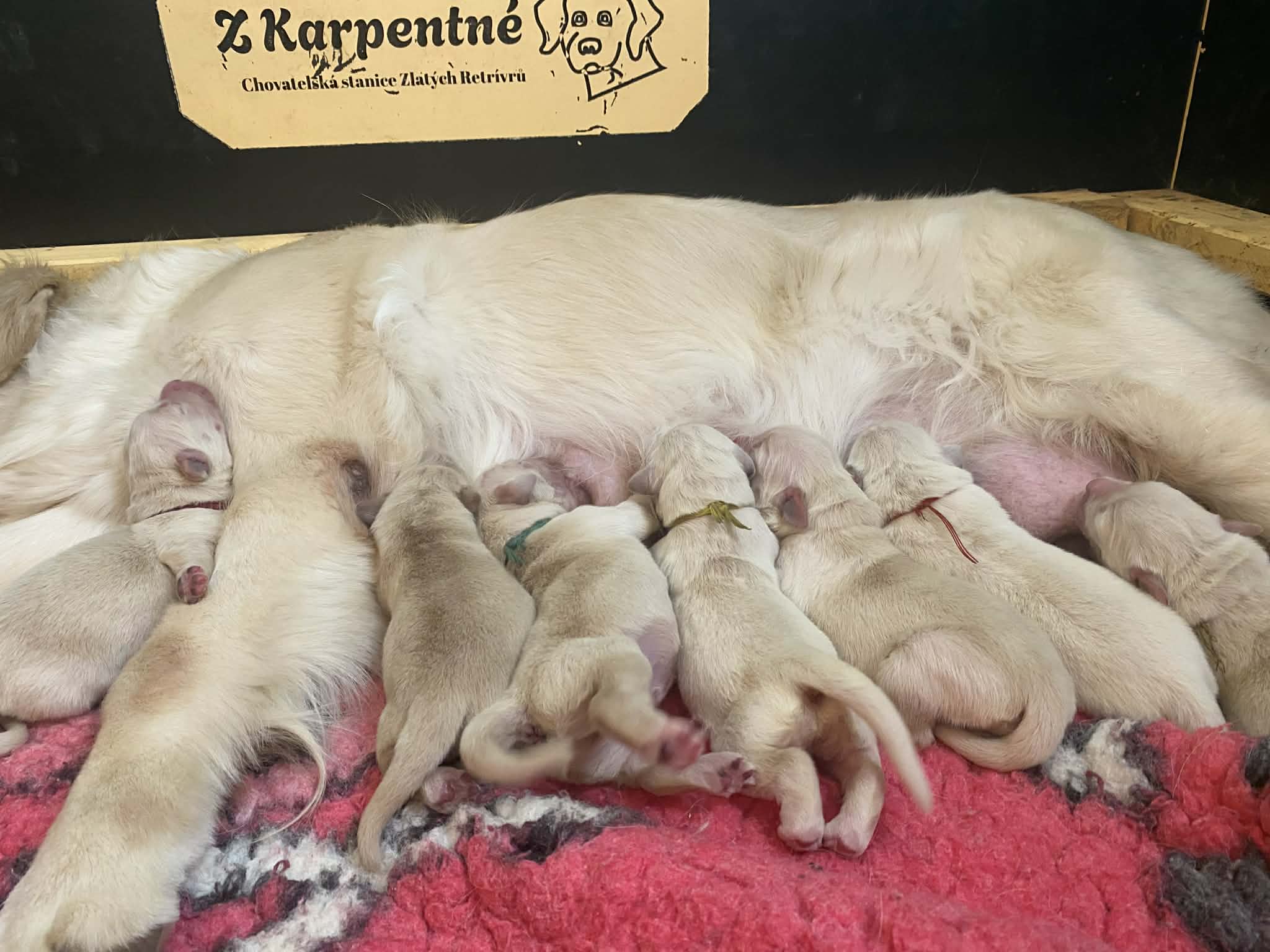 Ovšem jako vždy, Princesska měla na věc svůj názor a v deset večer mi hlasitým štěkotem oznámila, že rodíme....( v hlavě mi proběhlo, že další dvě noci beze spánku už nemůžu přežít a..) ..a jako ostatně vždy se Princess pustila do porodu s velkou vervou a energií a do rána bylo na světě nádherných 7 miminek - 4 sladké princezny a 3 udatní princové....Moje zlatá hoilčička to zvládla naprosto skvěle ( ostatně jako všechno, co v životě dělá)...A tak i přes obrovskou únavu mám obrovskou radost z krásných miminek maminky Princess a tatínka Twistíčka.....