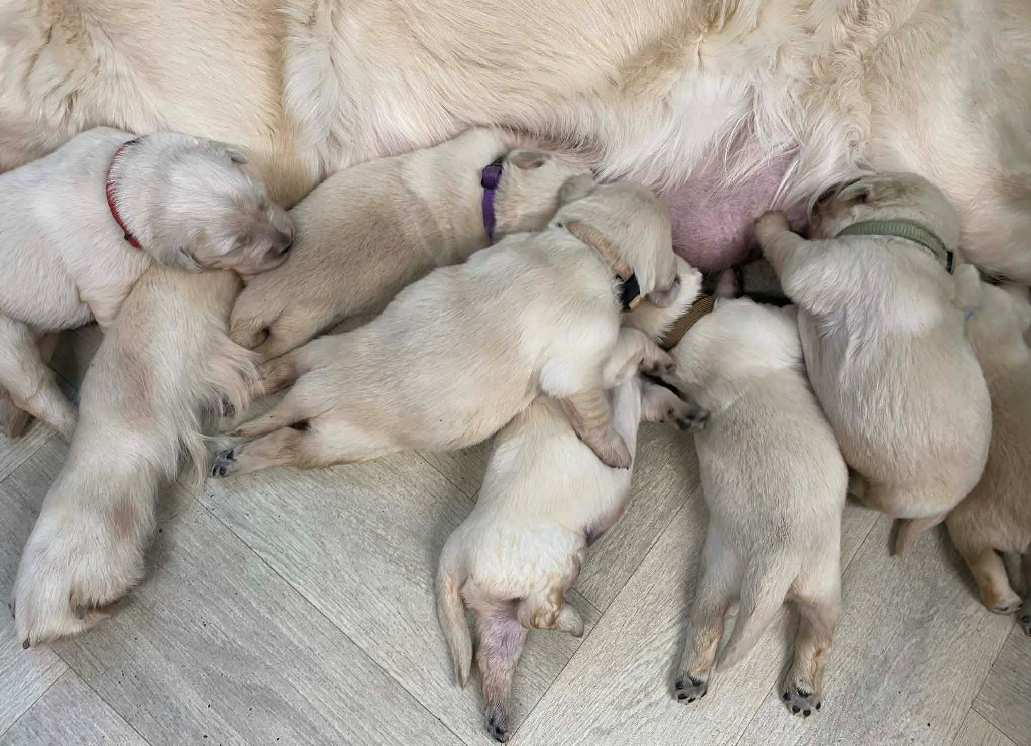 Miminka Princessky a Twistíka už jsou týden na světě a rostou jako z vody....Maminka Princess je jim neustále k dispozici a vzorně se o ně stará...A tak naši cvalíci rostou před očima....Už jsme jim museli vyměnit i oboječky, protože z těch porodních velmi rychle vyrostli.....Krásně se nám vybarvují do zlatova a tím , že mají pořád plná bříška, tak jsou naprosto spokojení.....